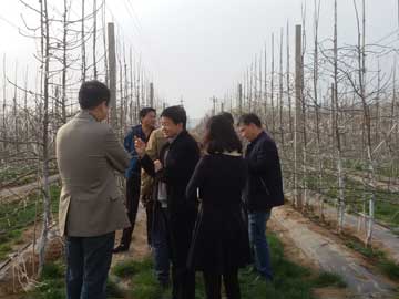 3月29日,陕西省外国专家局(以下简称“外专局”)专家一行来我司基地对基地矮砧苹果栽植模式进行参观调研。 基地负责人向来人详细介绍了基地概况,并重点介绍了矮砧苹果栽培模式特点以及公司引进的脱毒M9T337砧木特点。随后带领一行人实地参观了种植示范园、苗圃以及公司引进国外的先进农机设备。期间,外专局的专家就矮砧苹果栽植与传统乔化栽植模式在节省劳动力的问题上与我司负责人进行深入探讨,我司负责人表示:矮砧苹果栽植从水肥一体化滴管系统、果实采摘、修剪难度等方面利用设备进行工作,在提高工作效率的同时很大程度的节省劳动力。 参观期间,外专局一行感慨道:通过此次参观了解,深切感受到华圣公司在苹果栽培领域的综合实力!