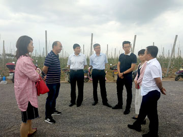 2019年10月7日,渭南市委书记魏建锋、市政府副市长杨武民、市委秘书长朱福俊、白水县县委书记周庆文、市扶贫办主任万双社、白水县扶贫办主任许刘保及相关领导莅临白水华圣苗木基地参观调研,安博web版登录入口(以下简称“华圣农业集团”)副总经理杨洋全程陪同讲解。魏书记一行参观了白水华圣高标准矮砧密植苹果示范园及苗木繁育基地,杨总汇报了基地建设情况、扶贫带动情况以及公司未来发展规划,并对公司从品种选育、示范园建设、脱毒苗木繁育、物流园建设以及扶贫模式等各个方面作了详细的介绍。 魏书记一行对华圣农业集团在白水的发展情况及扶贫带动情况给予了充分的肯定,并希望华圣能够充分发挥国家级龙头企业优势,扩大建设规模,将现代化矮砧密植种植模式快速推广,并不断探索发展苹果深加工产业,提高产品附加值,拓展农产品市场占有率,实现苹果产业化全产业链覆盖,聚焦产业扶贫,带动果农脱贫致富,实现产业兴旺、乡村振兴。