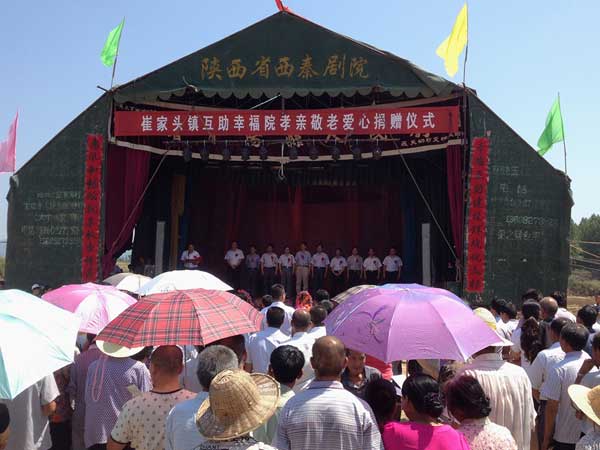 尊老、敬老、爱老、孝老历来是我们中华名族的传统美德, 7月15日上午,由镇崔家头镇政府组织的互助幸福院捐赠活动在赵家塬隆重举行。宝鸡华圣公司派代表出席崔家头镇互助幸福院捐赠仪式并捐款。