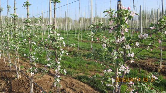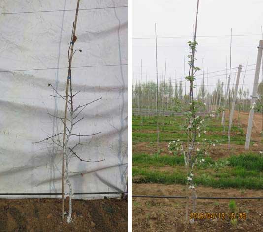 宝鸡华圣果业有限责任公司2015年首次引进莫迪品种矮化自根砧大苗,砧木为脱毒M9T337,于2015年4月定植于陕西省千阳县种植基地。