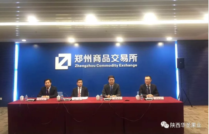 万众瞩目的苹果期货合约于2017年12月22日在郑州商品交易所正式挂牌交易。陕西华圣企业(集团)股份有限公司.果业公司做为企业代表参加了上市仪式。证监会副主席方星海等领导出席现场发布仪式,华圣果业总经理孙晓冰受邀出席并代表全国苹果经营企业发言。华圣交割代码Ap1801
